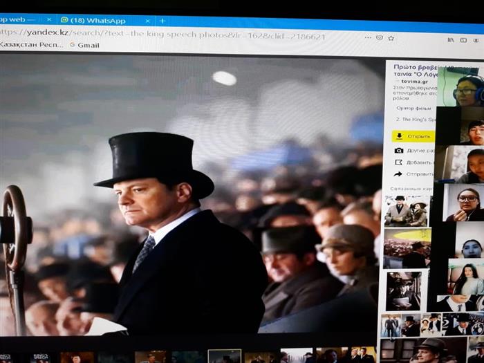 2020 жылдың 27 қарашасында "Movie Fans" клубының жетекшісі Тілеуғабылова Зейнегүл Анапияқызы, шетел тілдері кафедрасының, филология және әлемдік тілдер факультетінің аға оқытушысы он line "The King 's Speech" фильмін қарап, талқылады. Фильмнің көрсетілімі мен талқылануы Экономика және Бизнес Жоғары Мектебінің 1 курс студенттері арасында клубтың жоспары бойынша өтті.