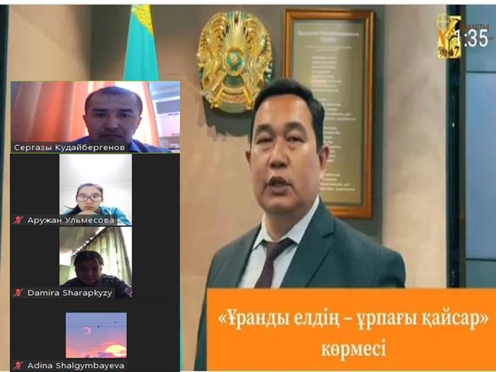 6-мамырда «Айналаңды нұрландыр» жобасы аясында Қазақстан Республикасының Отан қорғаушылар күніне орай Алматы музейінде «Ұранды елдің – ұрпағы қайсар» атты көрме ұйымдастырылды. Республикалық деңгейде өткен іс-шарада мәдениеттану мамандығының 1-курс студенттері көрмені онлайн тамашалады.