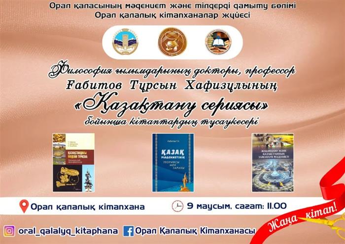9-маусым күні Орал қалалық кітапханалар жүйесінің ұйымдастыруымен «Қазақстан-2050 стратегиясы мәнмәтінінде Қазақстандағы жаңғыру үдерісіндегі мәдени ескерткіштердің орны мен рөлі » атты ғылыми жоба аясында орындалған «Қазақтану сериясы» бойынша жаңа кітаптардың тұсаукесері өтті.