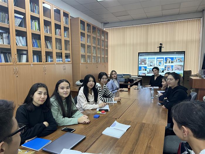 18 қазан күні Әл-Фараби атындағы Қазақ ұлттық университеті Философия және саясаттану факультеті Дінтану және мәдениеттану кафедрасының аға оқытушысы Кудерина Айжан Нұрхамитқызы мәдениеттану 1 курс студенттеріне еліміздің ұлттық мәдени құндылықтарын дәріптеу мақсатында қалыптасқан «Мәдени мұра бағдарламасының қажеттілігі» тақырыбында кураторлық сағат өткізді.