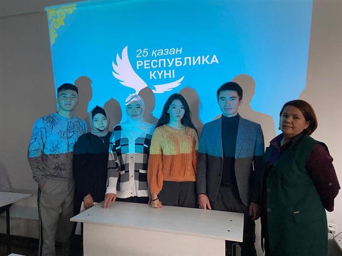 9 қарашада әл-Фараби атындағы ҚазҰУ дінтану және мәдениеттану кафедрасының аға оқытушысы Тунгатова Ұлжан Аскарбаевна және дінтану мамандығы 2-курс студенттері Әкімбек Сабина, Жөкен Әмина, Қанатова Азиза, Тасболат Дінмұхаммед, Қайырбаев Ринат 25 қазан Республика күніне арналған іс-шара өткізді. Жалпы 25 қазан Республика күнінің тарихы айтылып, сұрақ жауаптар қойылып, пайдалы талқылау болды.