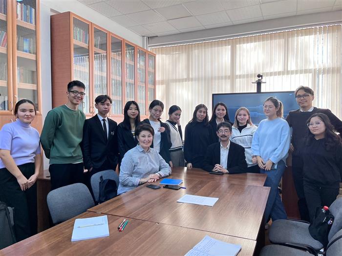 15-қарашада Философия және саясаттану факультеті 123-аудиторияда Дінтану және мәдениеттану кафедрасының аға оқытушысы Кудерина Айжан Нұрхамитқызының ұйымдастыруымен Цукуба университетінің профессоры Такаши Ниномиямен студенттердің кездесу өтті. Кездесуге мәдениеттану мамандығының 1-курс студенттері қатысты. Пайдалы әрі танымдық кездесу барысында студенттер жапон мәдениетімен танысып, оны қазақ мәдениетімен салыстырды. Студенттер жаңа әрі қызықты мәліметтер ала отырып, оны талдады. Студенттерге ғалымның тіл ғылымына деген сүйіспеншілігі тәнті етті.