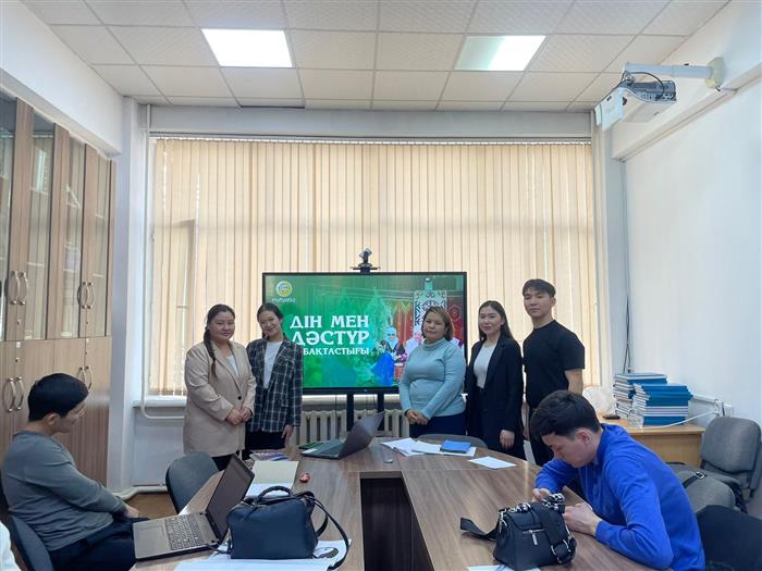 23-ақпан күні дінтану және мәдениеттану кафедрасының аға оқытушысы Тунгатова У.А дінтану мамандығының 3-курс студенттерімен бірге «Айналаңды нұрландыр» жобасы аясында «Діннің қазақ халқының салт-дәстүріндегі көрінісі» атты ашық тәрбие сағатын өткізді.