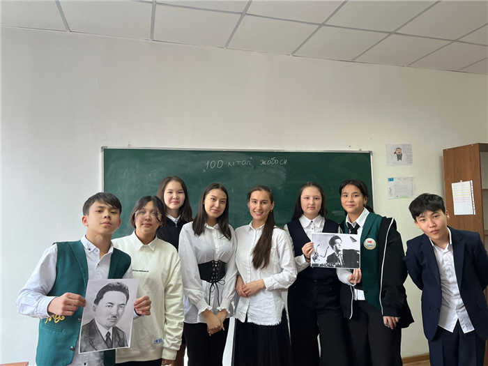 2023 жылдың 2-наурызда Әл-Фараби атындағы ҚазҰУ «6B03102-мәдениеттану» мамандығының 4-курс студенттері Назархан Мадина мен Куанова Анель ұйымдастыруымен педагогикалық практиканың жетекшісі Абишева А.К. Ғылыми жетекші: Каупенбаева С. қатысуымен университеттің «100 кітап» инновациялық жобасы аясында Әл-Фараби атындағы ҚазҰУ бейіндік мектебінде тәрбиелік іс-шара өткізді.