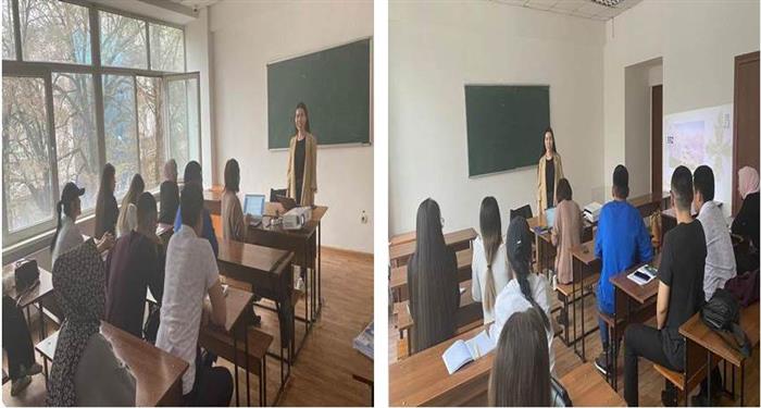 30-наурыз күні Философия және саясаттану факультетінің «6М020600-дінтану» мамандығының 1-курс магистранты Турысбекова Диана «6В02203-дінтану»» мамандығының 2-курс студенттеріне «Діни құндылықтар» тақырыбында ашық дәріс сабақ өткізді. «Діни құндылықтар» тақырыбы аясында діни наным сенімнің қалыптасуынан бастап, дәстүрлі конфессиялардың діни құндылықтары талқыланды. Дәріс барысында мәдениет пен діни құндылықтардың бір-бірінен бөлінбей астасып өмір сүретіндігі айтылды. Халықтың салт-дәстүрлері діни құндылықтардан бөлінбейді, себебі дін жергілікті халықтың өмір сүру салтына, дағдысына өз ықпалын тигізеді. Дәрісте адамның моральды, этикалы, мәдени құндылықтары талқыланды.