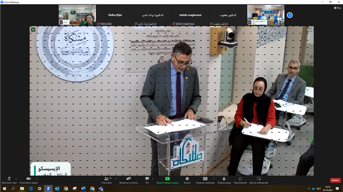 26 қазан күні «Мишкат» араб тілін қашықтан оқыту бағдарламасының екінші жылдық сессиясы аясында мамандығы араб тілімен байланысты оқытушыларға дәріс беретін мамандармен координациялық кездесу ұйымдастырылды. Сөзді ICESCO (Ислам әлемінің білім, ғылым және мәдениет ұйымы) бас директорының кеңесшісі Адел Бурауи бастады. Ол сарапшылардың барлығына сәттілік тілеп, ұсыныстар мен қарастыратын мәселелерді еруін түрде білдірулерін ұсынды. Ұйымдастырушылардың бірі доктор Мухаммад Исмаили Алауи биылғы сессияның бағдарламасымен таныстырды.