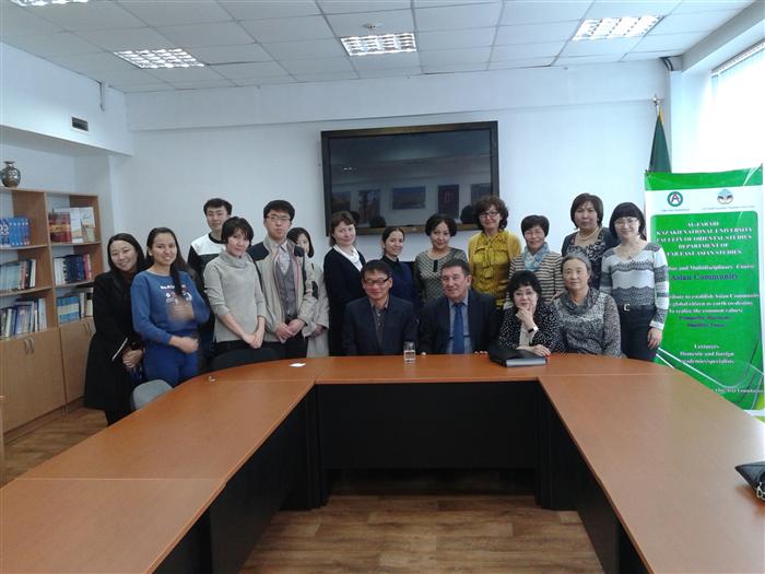 16.03.2016 жылы дінтану және мәдениеттану кафедрасының профессоры, филос.ғ.д. Ғабитов Тұрсын Хафизұлы Шығыстану факультетіндегі кореядан келген қонақтармен кездесу өткізіп, «Біртұтас Азия. Шығыстық зерттеулер» Халықаралық жоба аясында қоғамдастықтың азиаттық курсқа MENTAL TYPES OF EURASIAN CULTURE AND CIVILIZATION: KAZAKHSTAN AND RUSSIA тақырыбында дәріс оқыды. |