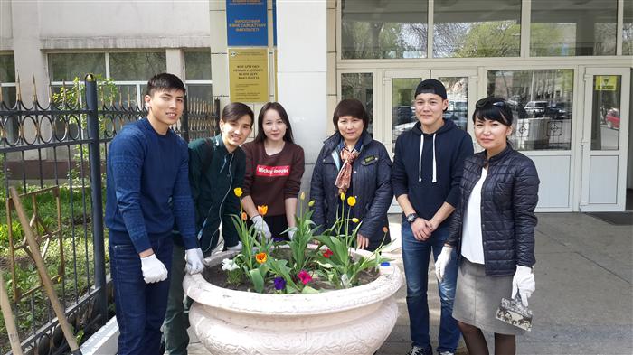 Дінтану және мәдениеттану кафедрасының ұйымдастыруымен 2016 жылдың 8 сәуір күні «KazNU – Green campus» жобаcы аясында декан Масалимова А.Р., куратор-эдвайзер Әлтаева Н.С. және «Мәдениеттану» мамандығының 2 курс студенттері Философия және саясаттану факультеті ғимаратының алдында гүлдер отырғызды.