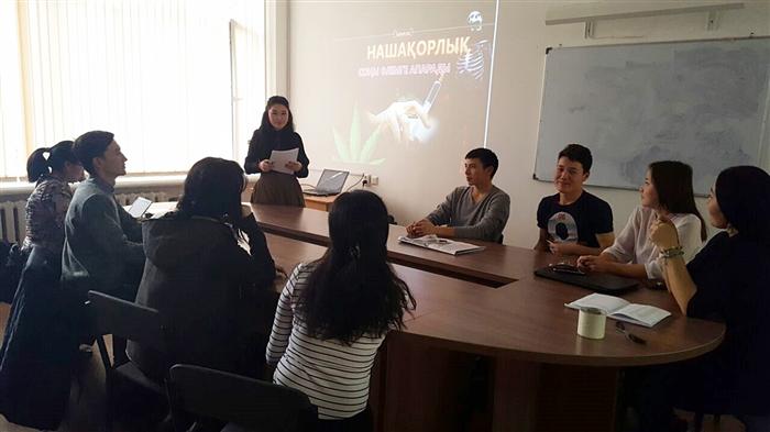 2016 жылдың 9 қарашасында филос.ғ.д., профессор Исмагамбетова З.Н., филос.ғ.к., аға оқытушы Бияздықова К.А., «Мәдениеттану» мамандығының 2 курс магистранты Қабылбаева Н.Қ. Мәдениет.KZ клубының аясында дінтану және мәдениеттану кафедрасының студенттеріне «Нашақорлыққа - жол жоқ»атты дөңгелек үстел өткізді.