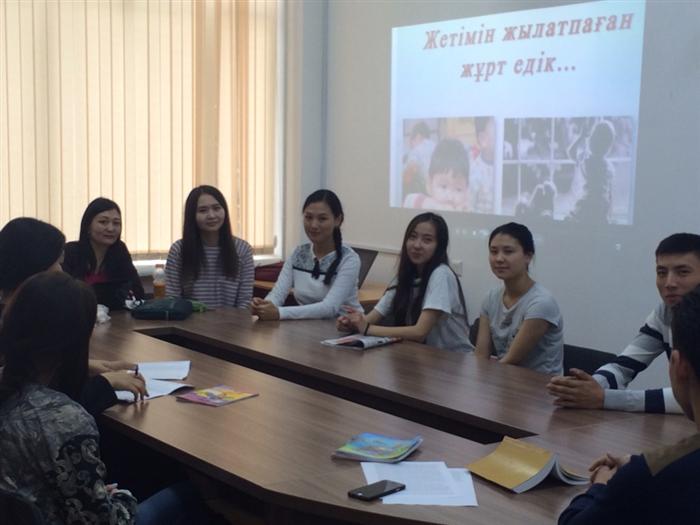 2016 жылдың 10 қарашасында «Айналаңды нұрландыр!» жобасы аясында дінтану және мәдениеттану кафедрасы мен «Шетел филологиясы» мамандығының 2 курс студенттері «ЖЕТІМІН ЖЫЛАТПАҒАН ЖҰРТ ЕДІК!» атты тәрбиелік шара өткізді.