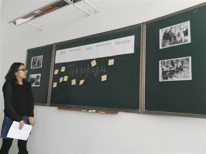 «Айналаңды нұрландыр» жобасы аясында «Діни сауатсыздық-экстремизмнің бастауы» тақырыбында ашық тәрбие сағаты өткізілді.