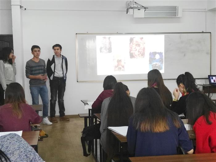 14 қараша күні сағат 12.00 де, ЭЖБ 413 аудиторияда «100 кітап» жобасы аясында, дінтану және мәдениеттану кафедрасының аға-оқытушысы Мұқан Нұрзат және эконом факультетінің «Қаржы » мамандығының 2 курс студенттерінің ұйымдастыруымен ашық тәрбие сағаты өткізілді.
