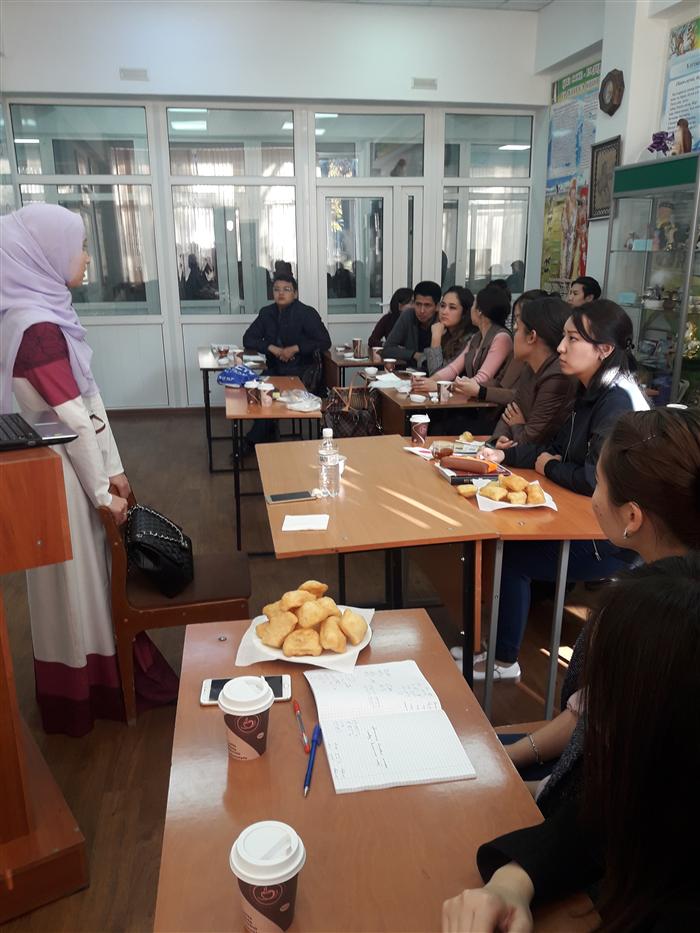 Қазан айының 27 жұлдызында университеттің «Айналаңды нұрландыр» жобасы аясында исламтанушы Марал Ермаханқызының дінтану мамандығы 2 курс студенттерімен кездесуі өтті. Кездесу тақырыбы: «Қоғам және дін».