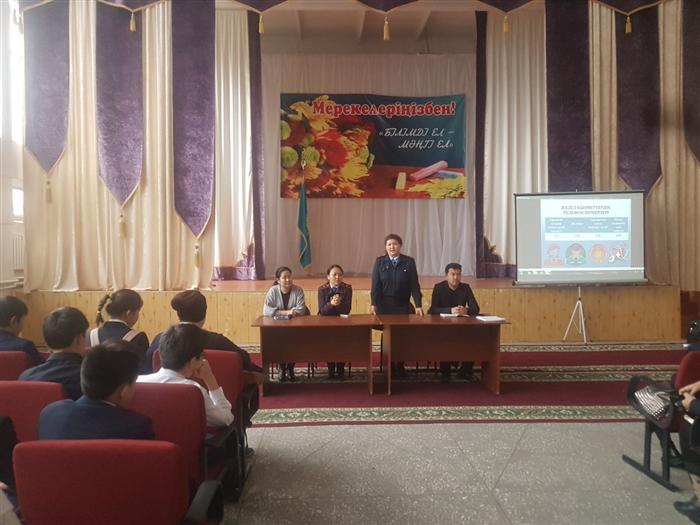 Шараның мақсаты: Іс-шараға 8, 9, 10 сынып оқушылары қатысты. Оқушылармен кездесу барысында террористердің негізгі мақсаттары, терракт болған жағдайда не істеу керек, әлеуметтік желідегі экстремистік бағыттағы пабликтерді айқындауды үйрететін мәселелер қозғалды. Сонымен қатар, қәзіргі деструктивті ағымдар жайлы ақпарат беру.