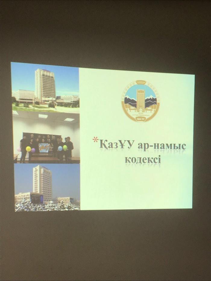 11 қараша 2017ж. 3 курс «Дінтану» мамандығының студенттерімен «әл-Фараби ат. ҚазҰУ-нің ар-намыс кодексі» тақырыбында ашық кураторлық сағат өткізілді.