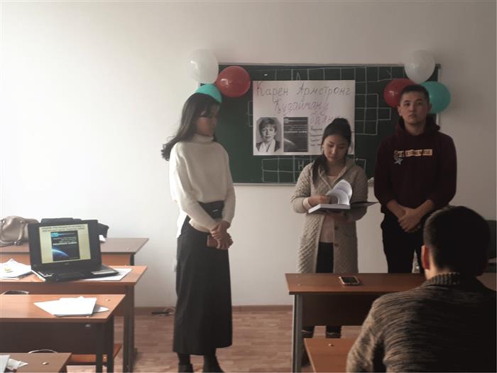 2019 жылдың 12 желтоқсанында дінтану және мәдениеттану кафедрасының ұстаздары Ж.Қаңтарбаева мен Н. Мұқанның ұйымдастыруымен 2 курс Дінтану мамандығының студенттері 100 кітап жобасы аясында Оскар Уайльдтың «Портрет Дориана Грея» кітабын оқып талдады.
