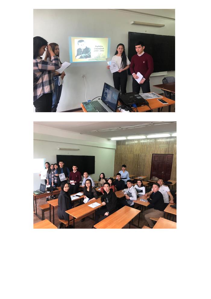 2020 жылдың 26 ақпанында Мұражай ісі және ескерткіштерді қорғау мамандығының 2 курс студенттерімен «100 кітап» жобасы аясында Бердібек Ыдырысұлы Соқпақбаевтың «Өлгендер қайтып келмейді» атты кітабы талқыланды.