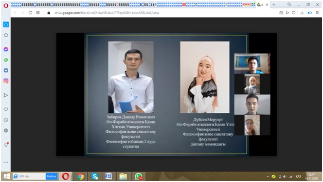 Шараға философия және саясаттану факультеттерінің студенттерімен қатар, Батыс Қазақстан университетінің студенттері, сонымен қатар шет елдік қатысушы қонақтар да болды. Шығармашылық жарыс 3 турдан тұрды. 1 турында Адайдың өлеңдері басқа тілдерді оқылды, мысалы Махамбет атындағы Батыс Қазақстан университеті Махсотова Айсана қазақ тілінде, Катар Компьютерлік Карнеги Меллон университетінің студенті (Qatar Computer Carnegie Mellon University) Ұлан Сейткалиев Абайдың өлеңдерін ағылшын тілінде оқыса, «Философия» мамандығының 2 курс студенті Забиров Данияр татар тілінде, ал дінтану мамандығының студенті Дүйсен Меруерт қытай тілдерінде оқып, Абайдың өлеңдерін өзге тілдерде поэзиялық әсемдікпен жеткізе білді. Сонымен қатар шараға, Абайдың шығармашылығына үлкен қызығушылық танытатын, Стамбул Медициналық университетінің студенті, Айшегюл Уакыр қатысты. Екінші бөлімінде Абайдың өмірі жайлы, қара сөздерін, өлеңдерін сұрақ қою арқылы білім деңгейлері сыналды. Үшінші бөлімде өлеңдерге ребус жасау оны шешу жұмыстары атқарылды. Абай мұраларына арналған бұл шара өте қызықты өтті. Хәкім Абайдың мұраларын бүгінгі күнде жастардың жадында сақталғандығына, олардың болашақ өскелең ұрпақтарға да жеткізе алатындықтарына куә болдық.