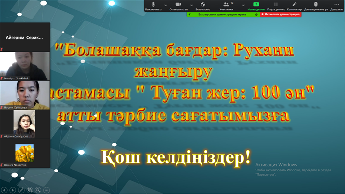 «Тәні саудың жаны сау» жобасы аясында «Туған жер: 100 əн» атты тақырыптағы республикалық деңгейдегі ашық тәрбие сағат өтті.