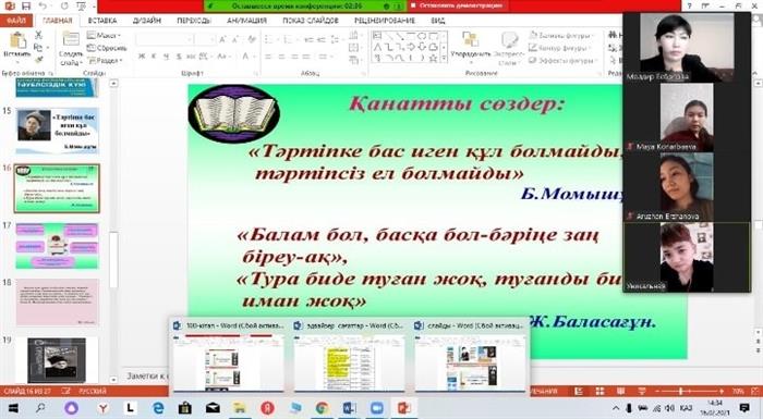 2020 жылдың 15қыркүйегінде«Мәдениеттану» мамандығының 2 курс студенттерімен қазақтың біртуар батыры Бауыржан Момышұлы туралы «Тәртіпке бағынған құл болмайды» атты онлайн Zoom платформасындатәрбиелік кездесусағаты өткізілді.