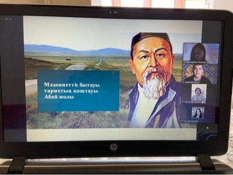 «Айналаңды нұрландыр» жобасы аясында2021 жылдың 10 сәуір күні сағат 14:00–де«География және Табиғатты пайдалану» факультетінің «Туризм» мамандығының 1 курс студенттері және «Философия және саясаттану» факультеті, «Дінтану және мәдениеттану» кафедрасының аға оқытушысы Шаңбаева Арайлым Нұрдығұлқызының ұйымдастыруымен «Мәдениеттің бастауы, тарихтың қоштауы - Абай» атты ашық сабақ өтті.Ашық сабақ барысында студенттерАбай Құнанбаевтың өмір жолын, шығармашылығын жан -жақты зерттеп,«Абай жолы» романынан үзінділер келтірді. Абайдың қара сөздеріне тоқталып өз ойларын жеткізді.