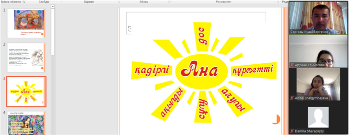 9-наурыз күні Халықаралық қыз-келіншектер, аналар күніне орай дінтану және мәдениеттану кафедрасының оқытушысы Құдайбергенов Серғазының ұйымдастыруымен мәдениеттану мамандығының 1-курс студенттеріне «Аналарға құрмет-азаматтық міндет» атты ашық тәрбие сағаты өтті. Тәрбие сағатының мақсаты-әйел-ана – қашаннан да ырыстың қайнары, берекенің негізі, ынтымақтың көзі. Ана – өмірдің алтын діңгегі, отбасының ұйытқысы екенін түсіндіру.