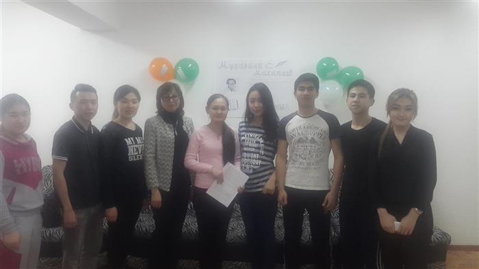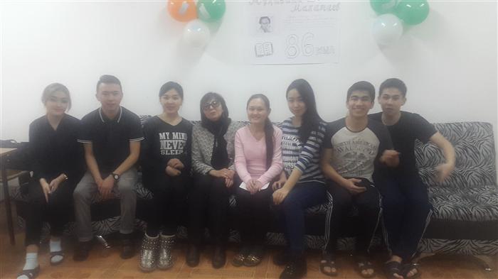 23 ақпан 2017 жылы сағат 19.30 Биология және биотехнология факультеті, Биотехнология кафедрасының «5В070100 - Биотехнология» мамандығының 1 - 3 курс студенттері жатақхана № 7-де куратор-эдвайзерлер: Атабаева С.Д., Асрандина С.Ш., Шоинбекова С.А., жетекшілігімен «100 кітап» жобасы бойынша М. Мақатаевтың 86 жылына және оның шығарымшылығына арналған кеш өткізілді.