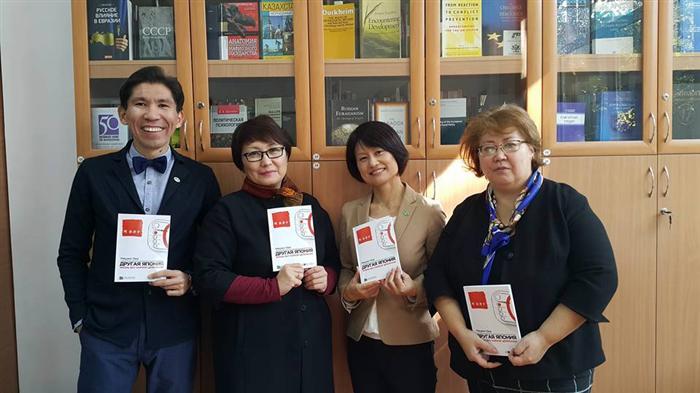 Бүгін "Тілеміс Мұстафин" атындағы саясататну және саяси технологиялар кафедрасының кітапханасында, белгілі саясаттанушы Досым Сатпаев және шығыстан келген қонақ Нацуко Ока студенттермен кездесуде болды. Нацуко Ока өзінің "Другая Япония Жизнь без чайной церемонии" атты кітабымен таныстырды. Күн Шығыс елінің боямасыз бүгігіні туралы әңгіме қозғап, Жапония туралы қалыптасқан көптеген стереотиптерді жойды. кездесу өте қызықты өтті. Кітапхана тағы бір қызықты әрі пайдалы кітаппен толықты. |