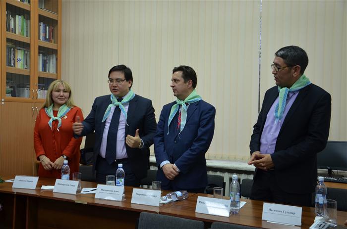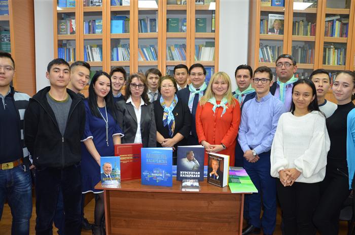 15 қараша сәрсенбі күні 15-00-де Елбасы - Қазақстан Республикасы Бірінші Президенті кітапханасы «Н. Назарбаев: дәуір, тұлға, қоғам» атты жылжымалы ғылыми-ағартушылық, мәдени көрмелік жобасы аясында «ПОЛИТОЛОГ» студенттік дискуссиялық клубында, Елбасы - Қазақстан Республикасы Бірінші Президенті кітапханасының директорының орынбасары Тимур Шамергеновпен, сонымен қатар, саяси ғылымдар кандидаты «Назарбаев моделі» кітабының авторларының бірі, халықаралық жобалар қызметінің жетекшісі Мариан Абишевамен, және кітапхананың стратегиялық зерттеулер қызметінің жетекішісі Михаил Мироненкомен кездесу ұйымдастырылды. Кездесу өте жақсы деңгейде өтті, студенттер қызықты сұрақтар қойып, маңызды ақпараттарды білді. |