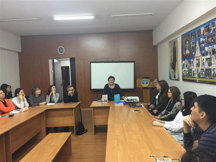 Орыс филологиясы және әлем әдебиеті кафедрасының ұстаздары Туманова А.Б., Павлова Т.В., Ли В.С., Какильбаева Э.Т., Мухамадиев Х.С., Абаева Ж.С. «100 кітап» и жобасаның аяасында Н.И. Гайнуллинаның 80-жылдық мерейтойына арналған мерекелік іс–шара өткізді.