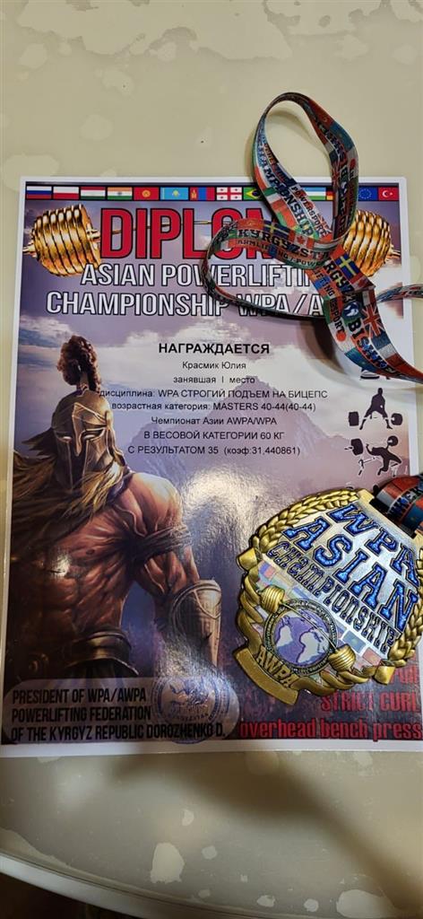Жалпы және қолданбалы психология кафедрасының докторанты Красмик Юлия пауэрлифтингтен Азия чемпионатында «Бицепске қатаң көтерілу» пәнінен 1-орынды жеңіп алды.