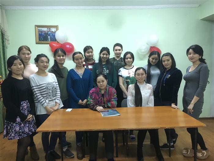 Тәрбие сағаты «Айналыңды нұрландыр» жобасы аясында өткізілді. Профессор Бердібаева С.Қ. студенттерге ұлы дала құндылықтары болып табылатын Қазақ халқының асыл қазынасы фольклордың бір түрі айтыс өнері жайлы және оның этнопсихологиясы туралы өз зерттеу нәтижелерімен таныстырды. Айтыс өнерінің этнописхологиясы жайлы зерттеудің тұлғалық дамудағы этноқұндылықтарды дамытаудағы маңыздылығын айтты. Э. Берннің трансактілік анализі негізінде зерттелген ғылыми жұмыстың көптеген қызықты және мазмұнды жақтарын баяндап берді.