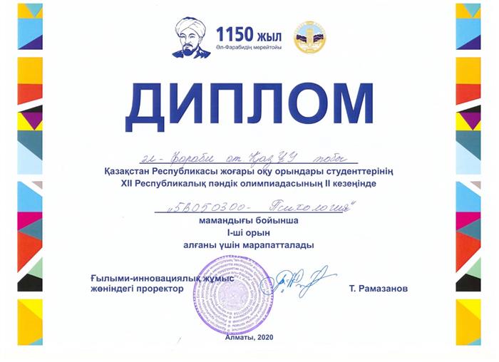 «5В050300-Психология» мамандығы бойынша XIІ Республикалық студенттік пәндік Олимпиада әл-Фараби атындағы ҚазҰУ онлайн форматта ZOOM қосымшасымен өтті.
