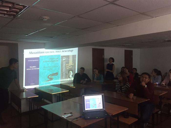 29 қыркүйек 2016 ж. сағ. 13.00 Дінтану және мәдениеттану кафедрасының 4-ші курс Дінтану мамандығының студенттері Университеттік «100 кітап» жобасы аясында «Махаббат қызық мол жылдар» атты тақырыпта іс-шара ұйымдастырады. Іс-шара барысында осы шығарма талқыланып студенттердіің пікірлері ортаға салынды. Іс-шара кафедралық деңгейде жауапты куратор эдвайзер Тунгатова Ұ.А. басшылығымен өтті.