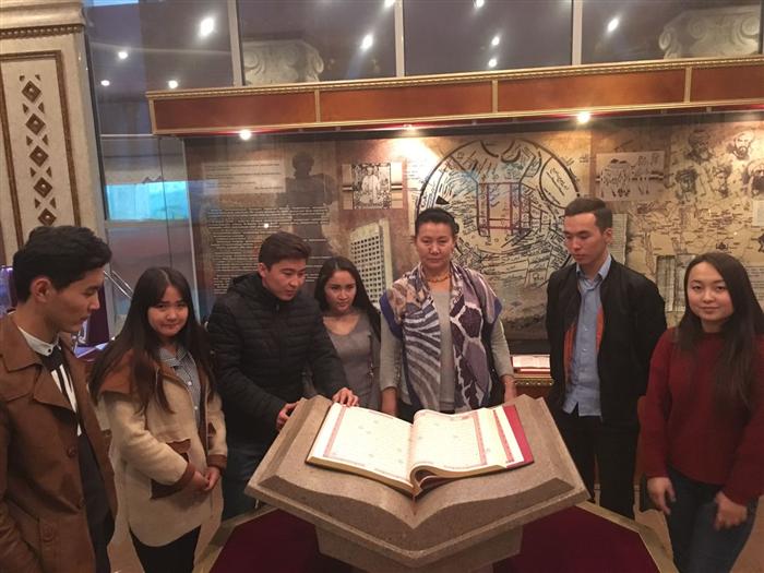 15.11.2016 ж. сағат 13.00-де «Айналаңды нұрландыр» жобасы аясында әл-Фараби кітапханасының мұражайында «Кітап әлемінен ескерткіш» атты саяхат сабағы өтті. Тыңдаушылар әл-Фараби кітапханасына саяхат жасады. Кітапхана мұражайын, Венгриядан келген елшілермен бірге философия ғылымдарының докторы профессор Жақып Алтаев кітапхана мұражайын таныстырып шықты.