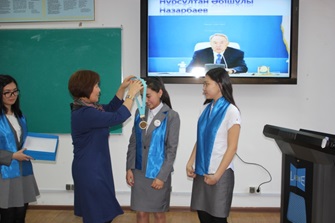 Құттықтаудан кейін Тілеужан Ақбота сенім білдірген мектеп оқушыларына ыстық ықыласын білдіріп, «Мектеп Президентінің антын» қабылдады.