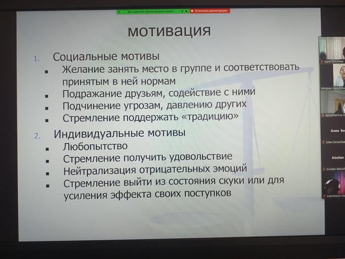 әл-Фараби атындағы ҚазҰУ колледжі білім алушыларымен оқу-тәрбие жұмысының жылдық жоспарына сай, салауатты өмір салты және дене тәрбиесі бағыты бойынша 04.02.2022 ж. «Ақ жол» жастар денсаулық сақтау орталығының маманы Сулейменова Айгерим Маратқызымен «Зиянды әдеттер» және «Омикрон» штаммы атты ZOOM платформасында вебинар өткізілді.