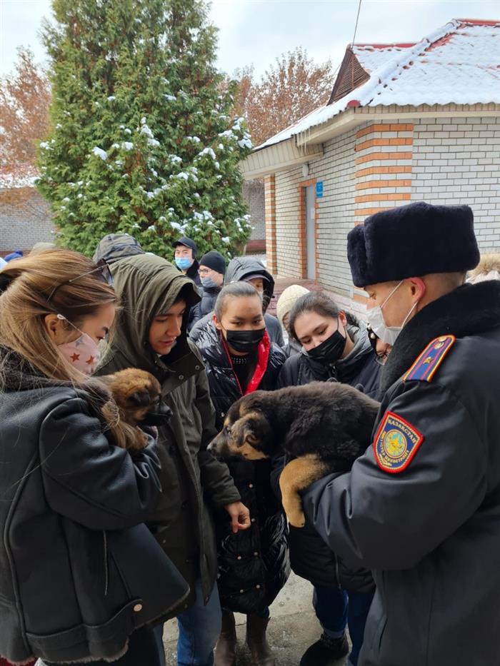 ының басшысы полиция подполковнигі Болгумбаева Анель мен ҚР ІІМ Кинологиялық орталығының асыл тұқымды питомнигінің басшысы Чебан Максим студенттерге кинология, кинологиялық орталықтың қызметі мен қызметтік иттермен жұмыс етудің ерекшеліктері туралы айтып берді.