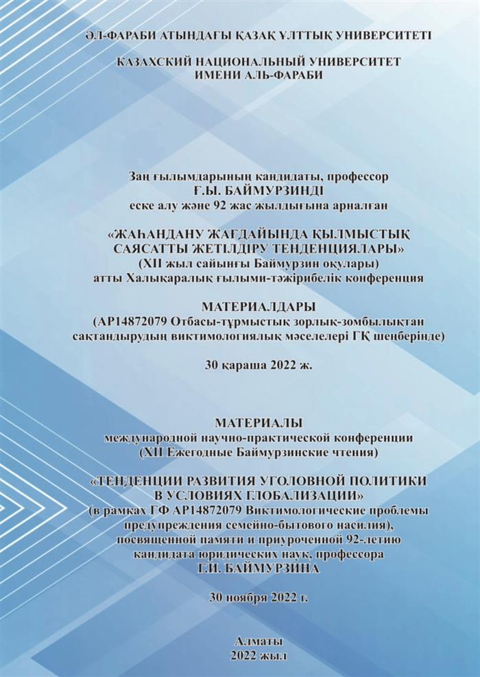 «ЖАҺАНДАНУ ЖАҒДАЙЫНДА ҚЫЛМЫСТЫҚ САЯСАТТЫ ЖЕТІЛДІРУ ТЕНДЕНЦИЯЛАРЫ» (XII жыл сайынғы Баймурзин оқулары)