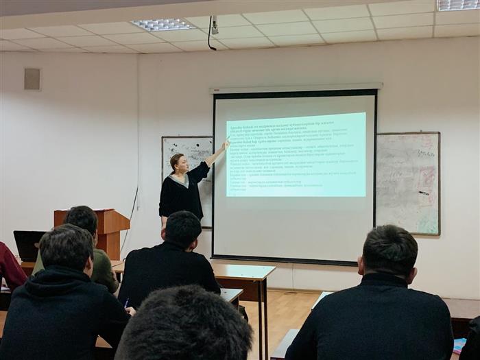 әл-Фараби атындағы ҚазҰУ, заң факультетінің қылмыстық құқық, қылмыстық іс жүргізу және криминалистика кафедрасы "Рухани жаңғыру" жобасының аясында «Құқықтану» мамандығының 3 курс студенттеріне «Қылмыстық істер бойынша сараптама тағайындаудың кейбір мәселелері» атты арнайы дәріс өткізді