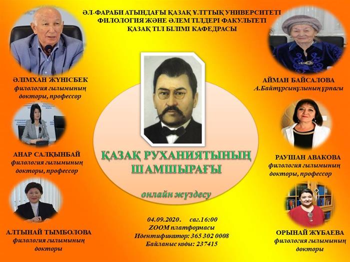 2020 жылы 4 қыркүйекте ZOOM платформасында әл-Фараби атындағы Қазақ ұлттық университеті филология және әлем тілдері факультеті қазақ тіл білімі кафедрасының ұйымдастыруымен «Қазақ руханиятының шамшырағы» онлайн жүздесу өткізілді.