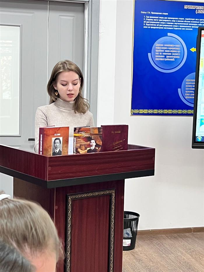 Бұл шараны меңгеруші ашты.кафедра з.ғ. д. Тыныбеков С. Т. Жаханша Досмұхамедов-көрнекті қоғамдық-саяси қайраткер, кәсіби заңгер, беделді Императорлық Мәскеу университетінің Заң факультетінің түлегі, "Алаш-Орда" Батыс бөлімінің төрағасы, Бүкілресейлік мұсылман кеңесі төрағасының орынбасары, прокурор, цивилист. Ол "Алаш-Орда"қызметінің құқықтық негіздерін қалыптастыруда жетекші рөлге ие. Ол "Алаш" ұлдарының идеяларын жүзеге асыруға елеулі үлес қосты, Қазақстанның тәуелсіздігі үшін күресті. Конференция аясында қазақ көшбасшысы Жаханшы Досмұхамедовтың талантының барлық қырларын ашқан студенттер сөз сөйледі. Іс-шара біздің мемлекетіміз үшін өте маңызды, өйткені биыл Жаханшы Досмұхамедовтың туғанына 135 жыл толады.