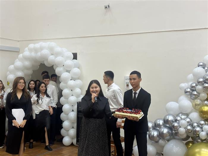 Мерекелік кеште студенттер ән, би және түрлі ойындар ұйымдастырып, қызықты да көңілді өткізді және ұстаздарға гүл шоқтарын силап көтеріңкі көңіл – күй силады.