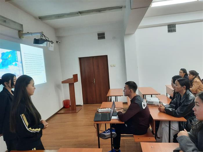 География, жерге орналастыру және кадастр кафедрасының 3 курс «6В05205 – География» мамандығының студенттері Республика күніне орай «Менің Қазақстаным» тақырыбында куратор сағатын өткізді. Куратор сағаты Республика күніне орай әнұранды айтумен басталды. Куратор сағатында Қазақстан Республикасының жетістіктері жайлы айтылып өткенімен салыстырмалы талдаулар жасалып, көптеген пікірлер айтылды. Куратор сағатының соңында эдвайзер Мылқайдаров Әлім Төлекұлы атсалысқан студенттерге рахмет айта отырып, Қазақстанның қуаты халықтардың бірлікте екенін баса айтып, бейбіт өмір кешуді тіледі.