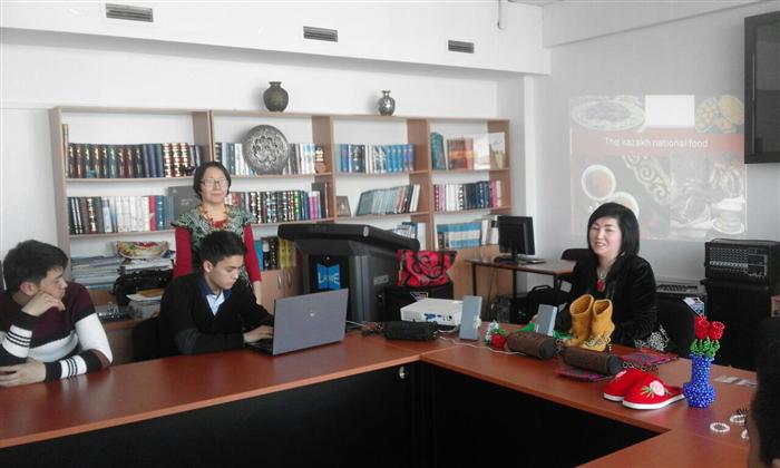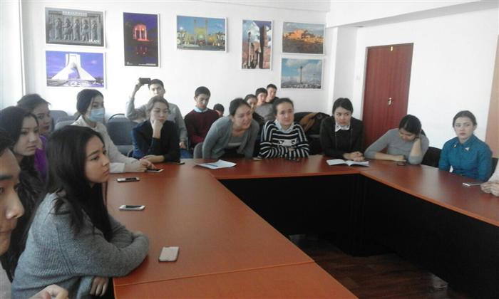 17 наурыз 2016ж сағ 14.00 Шығыстану факультетінің №422 ауд "Айналаңды нұрландыр" жобасы аясында Филология және әлем тілдері факультеті Шетел тілдері кафедрасының аға оқытушысы Н.А. Ештаева мен ХҚ факультеті Дипломатия кафедрасының аға оқытушысы З.А.Тлеуғабылованың ұйымдастыруымен Шығыстану, Философия және Саясаттану және ФМО факультеттері 1,2,3 курс студенттерінің Кәсіпкер Нұргүл Дәлелханқызымен кездесу өткізді.