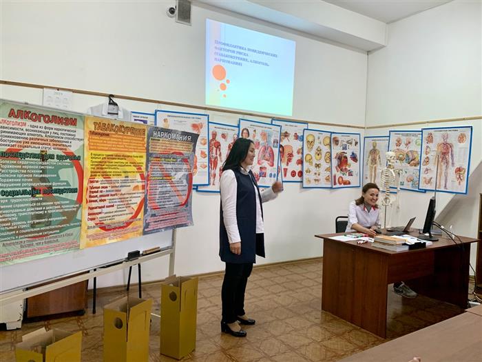 Педагогикалық тәжірибе аясында магистрантар Габасова Мейрамгуль, Байдильдаева меруерт және докторанттар Габасова Сауле, Жумабаева русланның қатысуымен «қауіп қатердің мінез құлықтық факторын алдын аплу» тақырыбынжа студенттер тобында тәрбиелік іс шара өткізілді. Студенттер іс шараға белсенді қатыса отырып, сұрақтар қойып, берілген интерактивті тапсырсмаларды қызығушылықпен орындады. Педагогикалық тәжірибе жетекшілері эпидемиология, биостатистка және дәлелді медицина негіздері кафедрасының доцент м.а., PhD Кузиева Г.Д., педагогика және білім бюеру менеджменті кафедрасының орыс бөлімінің жетекшісі п.ғ.д., профессор Магауова А.Б., жалпы және қолданбалы психология кафедрасынан PhD Баймолдина Л.О.