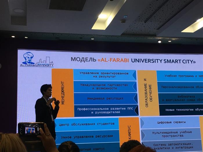 Конференцияға әл-Фараби атындағы Қазақ ұлттық университетінің ректоры Мұтанов Ғ.М., оқу ісі жөніндегі проректор Хикметов А.К. қатысып, «әл-Фараби атындағы Қазақ ұлттық университетіндегі цифрландыру тәжірибесі» тақырыбында баяндама жасады.