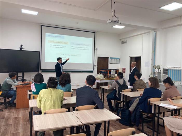 Компания өкілдеріне механика-математика факультетінің «Робототехника», «Механика және сұйық газдар» лабораториялары және 131 кабинеттегі «Каскадты күн жылу сорғысын орнату» таныстырылды.