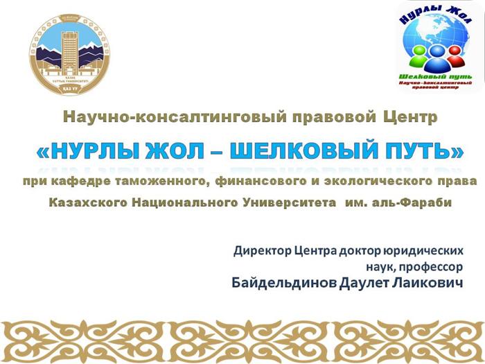 әл-Фараби атындағы ҚазҰУ кеден, қаржы және экологиялық құқық кафедрасының жанында «Нұрлы Жол – Жібек Жолы» құқықтық Ғылыми-консалдингтік Орталық