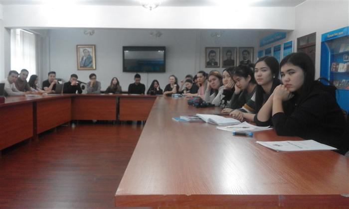 Журналистика факультетінде әлемге танымал бизнес-жаттықтырушы Константин Шамбердің (Германия) шеберлік-сыныбы өтті. Қонақ студенттер мен оқытушылардың сұрақтарына жауап беріп, өзінің табысты жұмысының құпияларымен бөлісті. Шамбер ұлттық корпорацияларды, атап айтқанда, Қытай корпорацияларын интернационализациялау жұмысын жүргізеді. Байланысу мәселелері ол үшін өте маңызды. Суретте: Шамбер К., Мұқанова Г.К., Альжанова А.Б., Шыңғысова Н.Т., студенттер